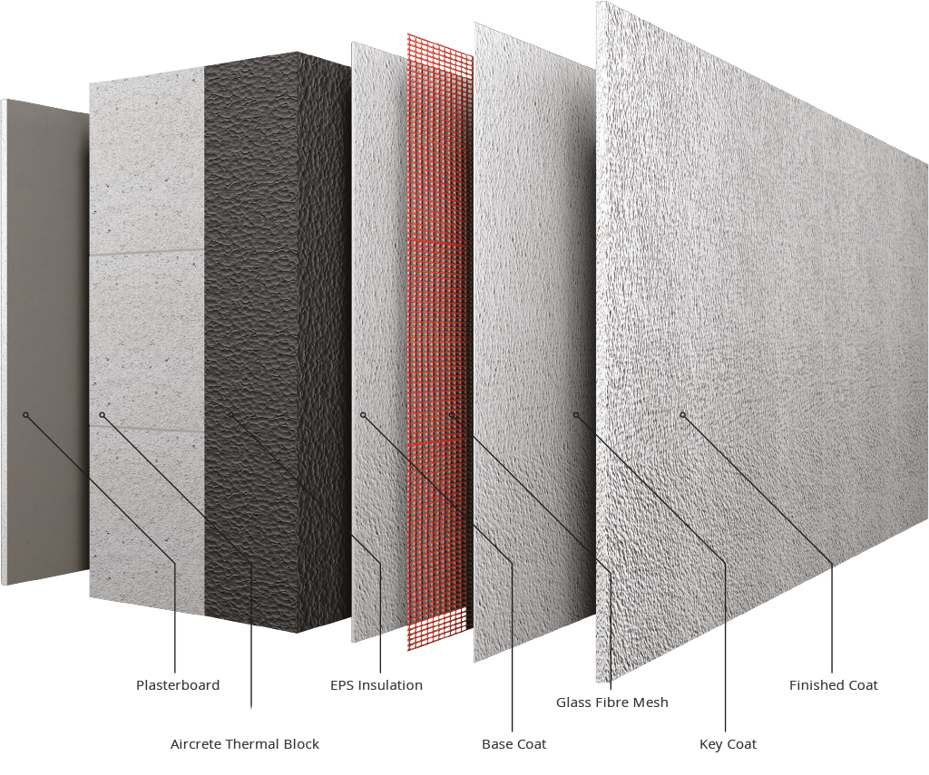 The composite system essentially wraps your home in insulation, complimenting the Aircrete Thermal Block and providing another high performance barrier to heat loss.